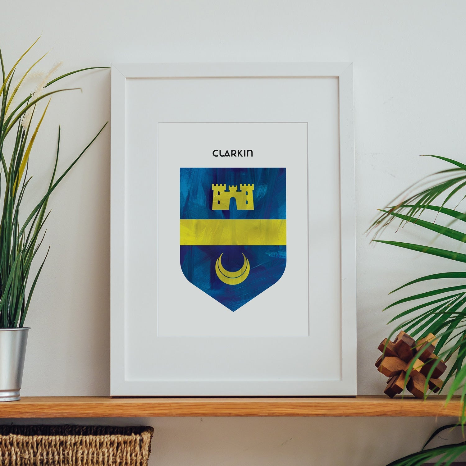 Explore our full collection of Irish family crests and family crests from further afield. Prints are made to order or ready-made and available for immediate dispatch. Each family coat of arms is a unique, personalised print and makes for charming wall art celebrating your family's surname.